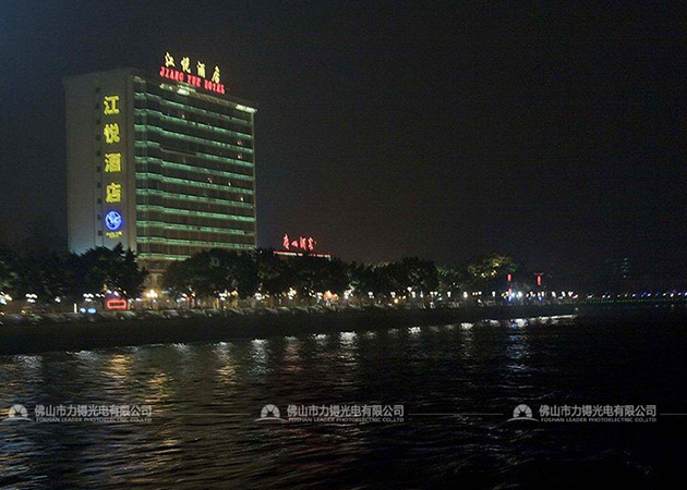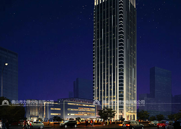 方向三:塔楼不变,裙楼 通过立杆装投影灯(裙楼 幕墙不作改变)。