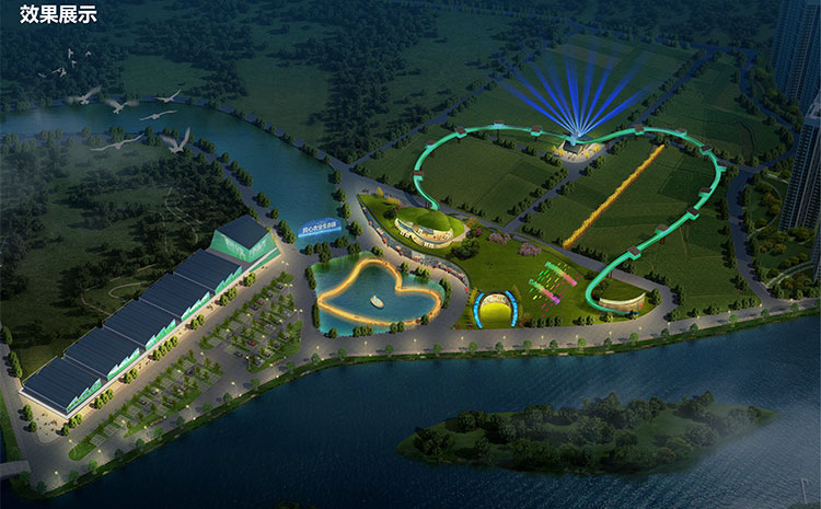 同心现代农业生态园的水体与场地条件十分优越,是灯光秀工程可以重点依托的资源。在设计中,灯光秀项目的设置将重点围绕这两大要素展开,兼顾其发散出来的各方面要求,突出项目的多样性、主题性和宜地性,使得灯光秀的建设既有核心又丰富多彩。